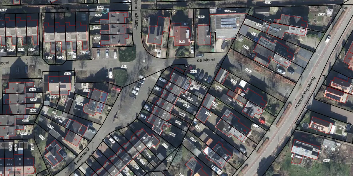 Gebruik de zoekbalk of klik op een perceel voor informatie over de adressen binnen dit perceel.