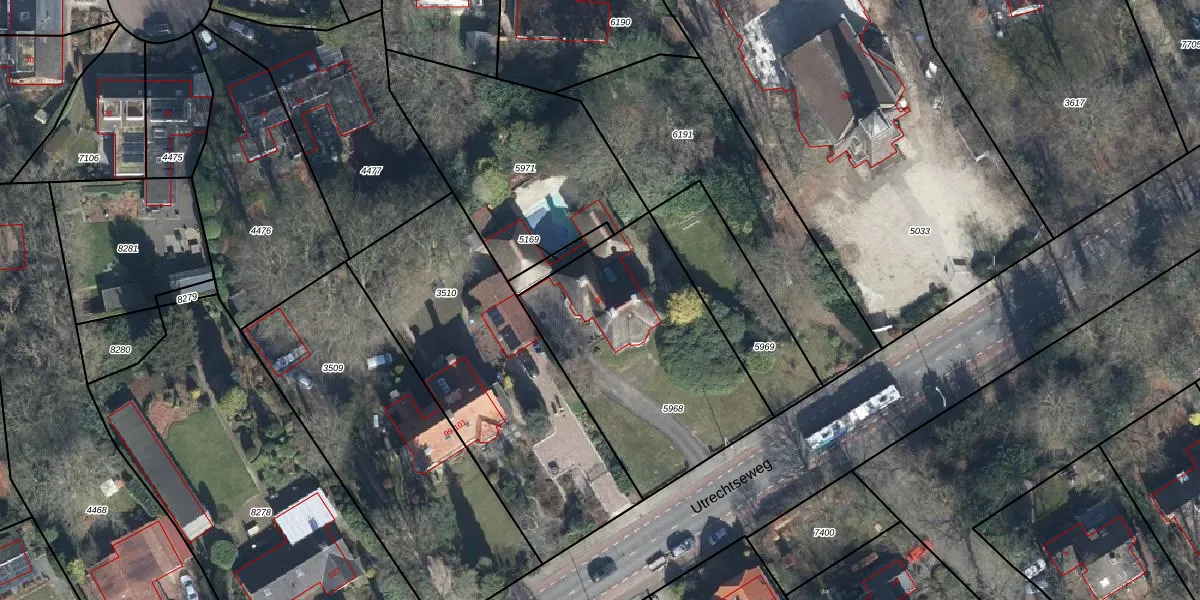 Het perceel waarop Utrechtseweg 97 staat heeft een oppervlakte van 1033 m². Dit is een zeer groot perceel. De perceeloppervlakte wordt geregistreerd door het Kadaster. Gedetailleerde informatie over de maten van dit perceel kunt u vinden in het rapport Kadastrale kaart met maatvoering van Utrechtseweg 97.
