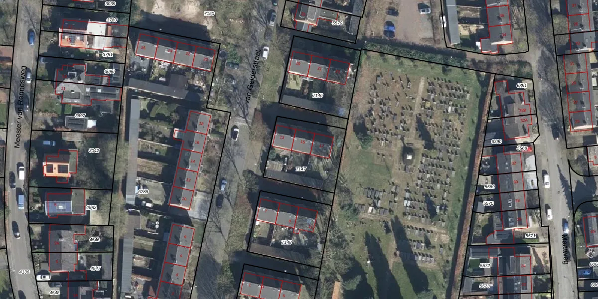 van Gelderstraat 15 is gelegen op kadastraal perceel RKM00C7147. Deze kadastrale aanduiding is uniek en wordt gebruikt door het Kadaster om eigendomsrechten en andere zakelijke rechten vast te leggen. Het perceel maakt onderdeel uit van de kadastrale gemeente Renkum.