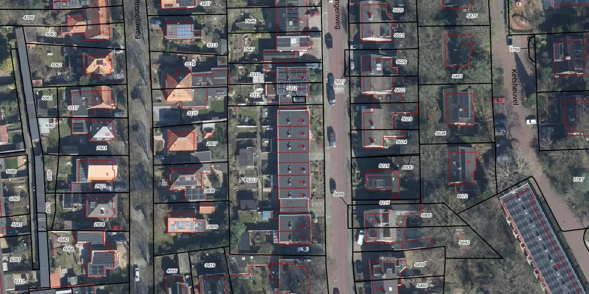 Het perceel waarop Van Ingenweg 20-A staat heeft een oppervlakte van 1640 m². Dit is een zeer groot perceel. De perceeloppervlakte wordt geregistreerd door het Kadaster. Gedetailleerde informatie over de maten van dit perceel kunt u vinden in het rapport Kadastrale kaart met maatvoering van Van Ingenweg 20-A.