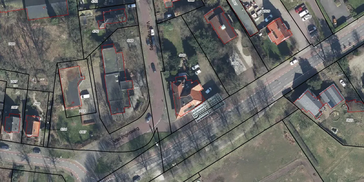 Het perceel waarop Van Ingenweg 3 staat heeft een oppervlakte van 1417 m². Dit is een zeer groot perceel. De perceeloppervlakte wordt geregistreerd door het Kadaster. Gedetailleerde informatie over de maten van dit perceel kunt u vinden in het rapport Kadastrale kaart met maatvoering van Van Ingenweg 3.