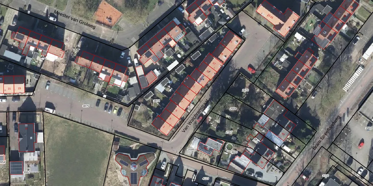 Het perceel waarop Van Walchrenstraat 9 staat heeft een oppervlakte van 1502 m². Dit is een zeer groot perceel. De perceeloppervlakte wordt geregistreerd door het Kadaster. Gedetailleerde informatie over de maten van dit perceel kunt u vinden in het rapport Kadastrale kaart met maatvoering van Van Walchrenstraat 9.