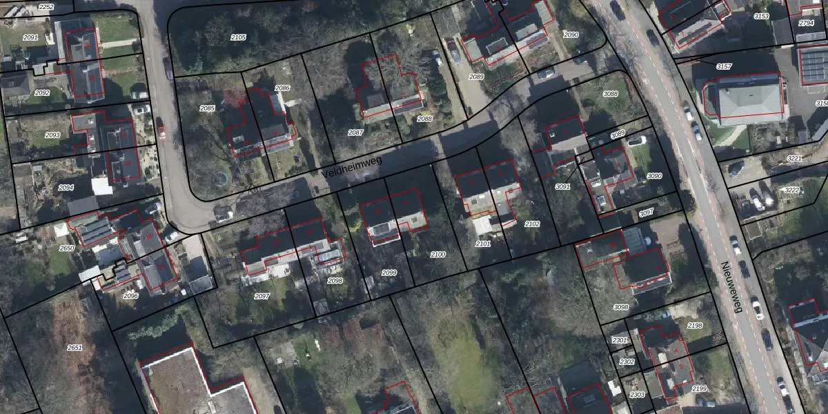 Gebruik de zoekbalk of klik op een perceel voor informatie over de adressen binnen dit perceel.