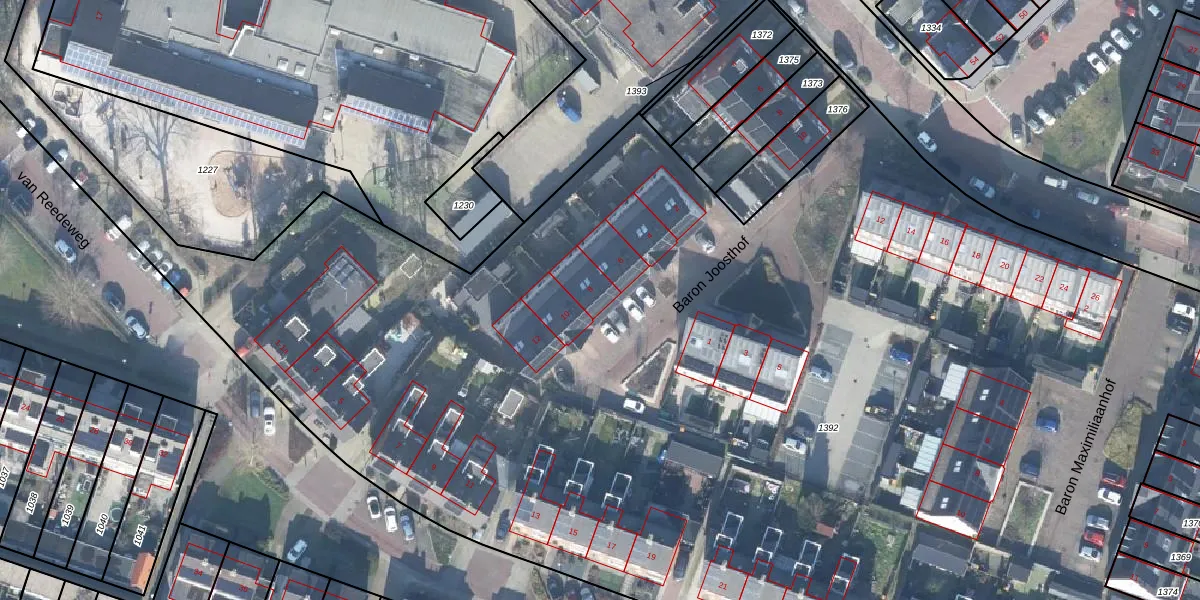 Het perceel waarop Baron Joosthof 8 staat heeft een oppervlakte van 1,3 ha. Dit is een zeer groot perceel. De perceeloppervlakte wordt geregistreerd door het Kadaster. Gedetailleerde informatie over de maten van dit perceel kunt u vinden in het rapport Kadastrale kaart met maatvoering van Baron Joosthof 8.