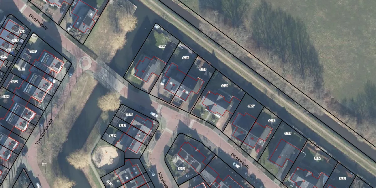 Gebruik de zoekbalk of klik op een perceel voor informatie over de adressen binnen dit perceel.