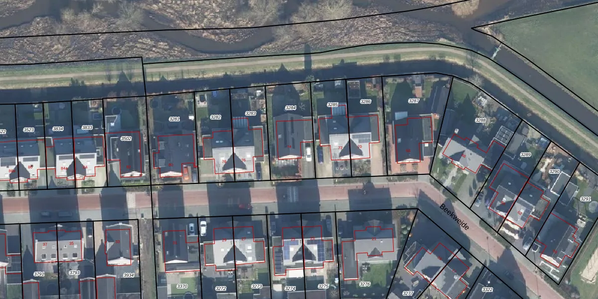 Het perceel waarop Beekweide 74 staat heeft een oppervlakte van 480 m². Dit is een groot perceel. De perceeloppervlakte wordt geregistreerd door het Kadaster. Gedetailleerde informatie over de maten van dit perceel kunt u vinden in het rapport Kadastrale kaart met maatvoering van Beekweide 74.