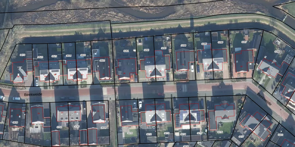 Het perceel waarop Beekweide 78 staat heeft een oppervlakte van 370 m². Dit is een groot perceel. De perceeloppervlakte wordt geregistreerd door het Kadaster. Gedetailleerde informatie over de maten van dit perceel kunt u vinden in het rapport Kadastrale kaart met maatvoering van Beekweide 78.