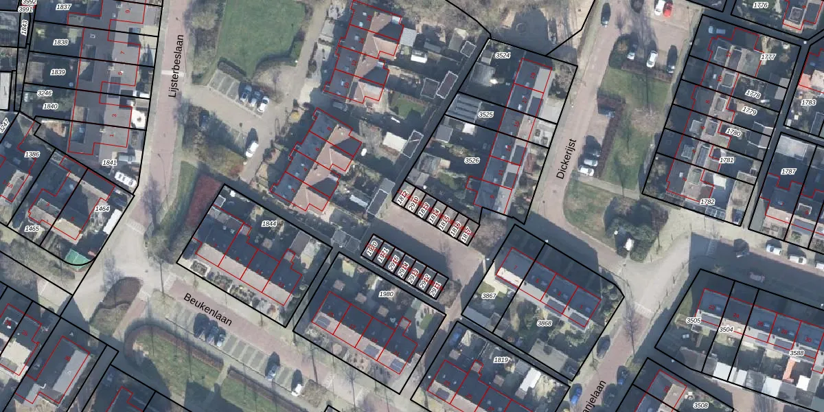 Gebruik de zoekbalk of klik op een perceel voor informatie over de adressen binnen dit perceel.