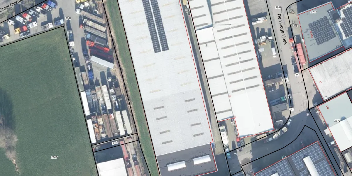 Het perceel waarop De Hooge Hoek 21 staat heeft een oppervlakte van 5460 m². Dit is een zeer groot perceel. De perceeloppervlakte wordt geregistreerd door het Kadaster. Gedetailleerde informatie over de maten van dit perceel kunt u vinden in het rapport Kadastrale kaart met maatvoering van De Hooge Hoek 21.