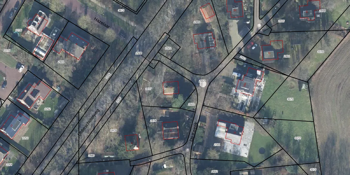 Het perceel waarop De Kweek 1 staat heeft een oppervlakte van 614 m². Dit is een groot perceel. De perceeloppervlakte wordt geregistreerd door het Kadaster. Gedetailleerde informatie over de maten van dit perceel kunt u vinden in het rapport Kadastrale kaart met maatvoering van De Kweek 1.