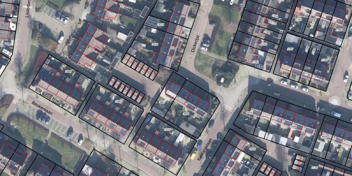 Het perceel waarop Dickerijst 7 staat heeft een oppervlakte van 219 m². Dit is een middelgroot perceel. De perceeloppervlakte wordt geregistreerd door het Kadaster. Gedetailleerde informatie over de maten van dit perceel kunt u vinden in het rapport Kadastrale kaart met maatvoering van Dickerijst 7.