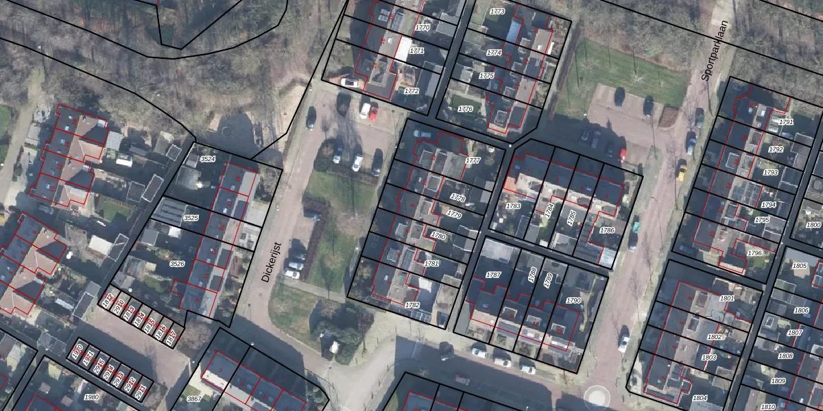 Het perceel waarop Dickerijst 8 staat heeft een oppervlakte van 156 m². Dit is een middelgroot perceel. De perceeloppervlakte wordt geregistreerd door het Kadaster. Gedetailleerde informatie over de maten van dit perceel kunt u vinden in het rapport Kadastrale kaart met maatvoering van Dickerijst 8.
