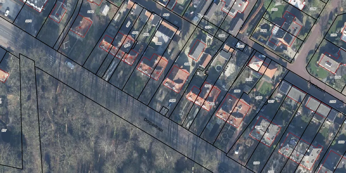 Gebruik de zoekbalk of klik op een perceel voor informatie over de adressen binnen dit perceel.