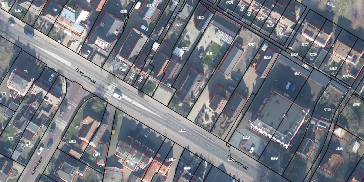 Het perceel waarop Dorpsstraat 54 staat heeft een oppervlakte van 915 m². Dit is een groot perceel. De perceeloppervlakte wordt geregistreerd door het Kadaster. Gedetailleerde informatie over de maten van dit perceel kunt u vinden in het rapport Kadastrale kaart met maatvoering van Dorpsstraat 54.