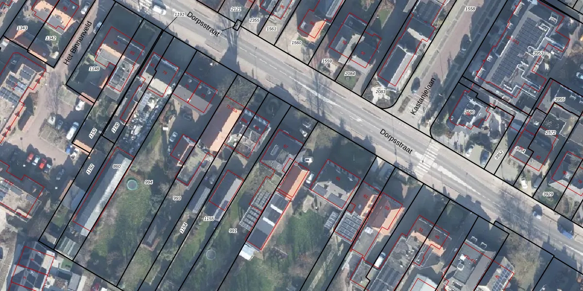 Het perceel waarop Dorpsstraat 67 staat heeft een oppervlakte van 932 m². Dit is een groot perceel. De perceeloppervlakte wordt geregistreerd door het Kadaster. Gedetailleerde informatie over de maten van dit perceel kunt u vinden in het rapport Kadastrale kaart met maatvoering van Dorpsstraat 67.