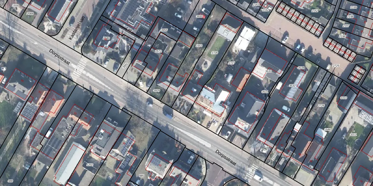 Gebruik de zoekbalk of klik op een perceel voor informatie over de adressen binnen dit perceel.