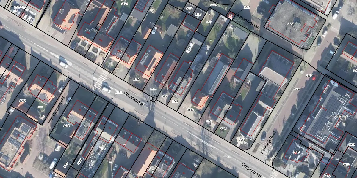 Gebruik de zoekbalk of klik op een perceel voor informatie over de adressen binnen dit perceel.