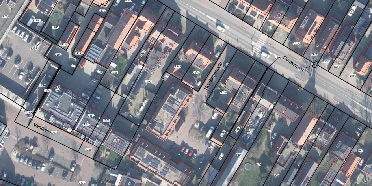 Het perceel waarop Het Binnenveld 1 staat heeft een oppervlakte van 1,7 ha. Dit is een zeer groot perceel. De perceeloppervlakte wordt geregistreerd door het Kadaster. Gedetailleerde informatie over de maten van dit perceel kunt u vinden in het rapport Kadastrale kaart met maatvoering van Het Binnenveld 1.