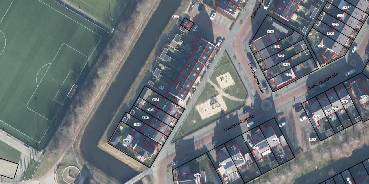 Het perceel waarop Leeuwerikweide 50 staat heeft een oppervlakte van 12,2 ha. Dit is een zeer groot perceel. De perceeloppervlakte wordt geregistreerd door het Kadaster. Gedetailleerde informatie over de maten van dit perceel kunt u vinden in het rapport Kadastrale kaart met maatvoering van Leeuwerikweide 50.