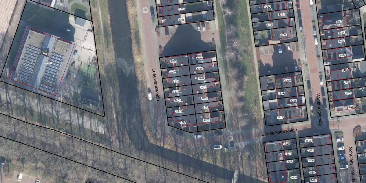 Het perceel waarop Leeuwerikweide 55 staat heeft een oppervlakte van 84 m². Dit is een klein perceel. De perceeloppervlakte wordt geregistreerd door het Kadaster. Gedetailleerde informatie over de maten van dit perceel kunt u vinden in het rapport Kadastrale kaart met maatvoering van Leeuwerikweide 55.