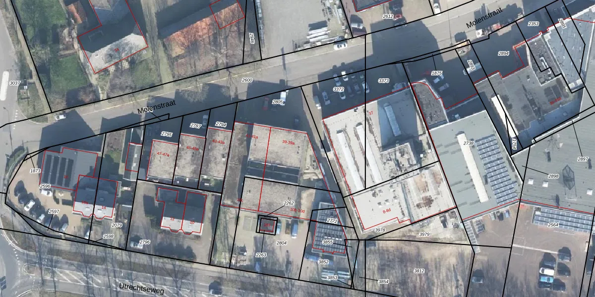 Het perceel waarop Molenstraat 39-a staat heeft een oppervlakte van 1107 m². Dit is een zeer groot perceel. De perceeloppervlakte wordt geregistreerd door het Kadaster. Gedetailleerde informatie over de maten van dit perceel kunt u vinden in het rapport Kadastrale kaart met maatvoering van Molenstraat 39-a.