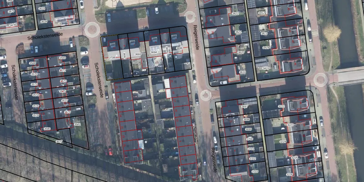 Het perceel waarop Reigerweide 19 staat heeft een oppervlakte van 12,2 ha. Dit is een zeer groot perceel. De perceeloppervlakte wordt geregistreerd door het Kadaster. Gedetailleerde informatie over de maten van dit perceel kunt u vinden in het rapport Kadastrale kaart met maatvoering van Reigerweide 19.