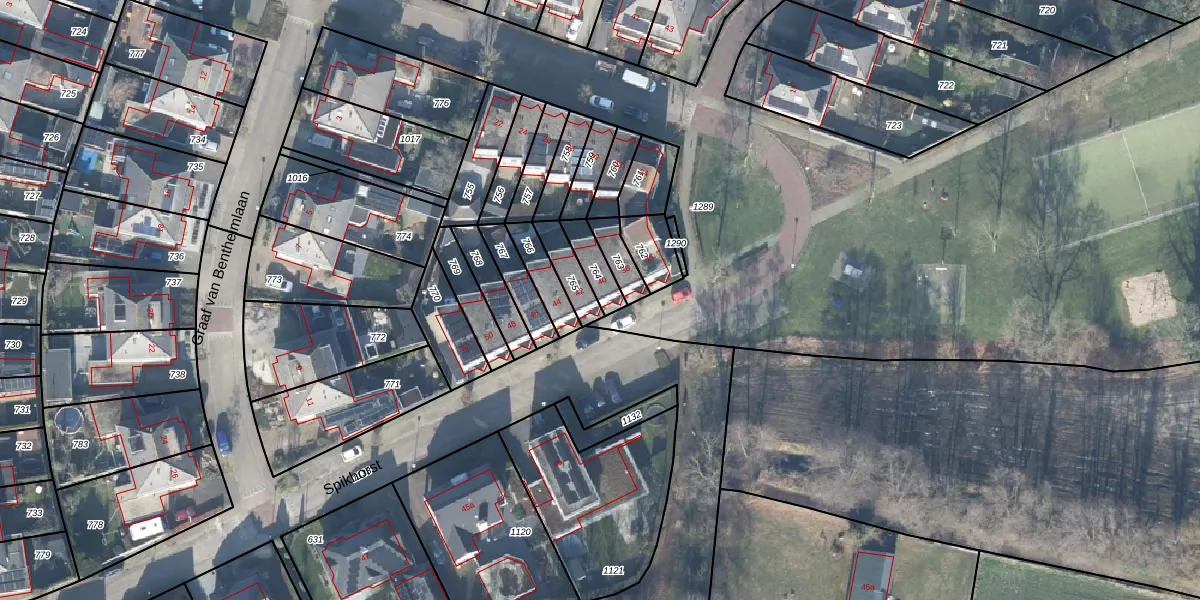 Gebruik de zoekbalk of klik op een perceel voor informatie over de adressen binnen dit perceel.