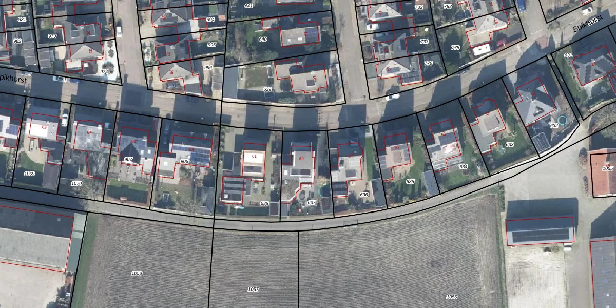 Spikhorst 59 is gelegen op kadastraal perceel RWD01G637. Deze kadastrale aanduiding is uniek en wordt gebruikt door het Kadaster om eigendomsrechten en andere zakelijke rechten vast te leggen. Het perceel maakt onderdeel uit van de kadastrale gemeente Renswoude.