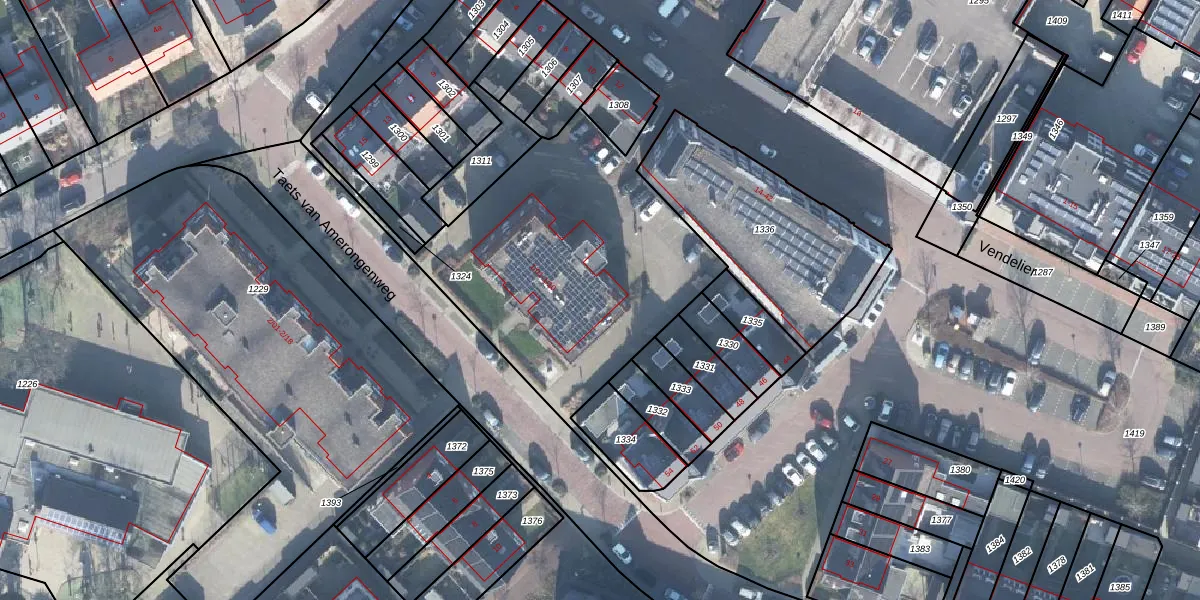 Het perceel waarop Taets van Amerongenweg 1-10 staat heeft een oppervlakte van 1,7 ha. Dit is een zeer groot perceel. De perceeloppervlakte wordt geregistreerd door het Kadaster. Gedetailleerde informatie over de maten van dit perceel kunt u vinden in het rapport Kadastrale kaart met maatvoering van Taets van Amerongenweg 1-10.