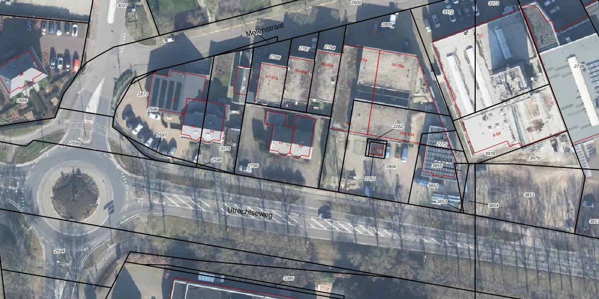 Utrechtseweg 10 is gelegen op kadastraal perceel RWD01C2796. Deze kadastrale aanduiding is uniek en wordt gebruikt door het Kadaster om eigendomsrechten en andere zakelijke rechten vast te leggen. Het perceel maakt onderdeel uit van de kadastrale gemeente Renswoude.
