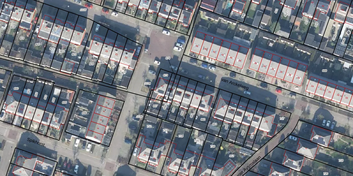 Het perceel waarop van Arckelweg 45 staat heeft een oppervlakte van 93 m². Dit is een klein perceel. De perceeloppervlakte wordt geregistreerd door het Kadaster. Gedetailleerde informatie over de maten van dit perceel kunt u vinden in het rapport Kadastrale kaart met maatvoering van van Arckelweg 45.