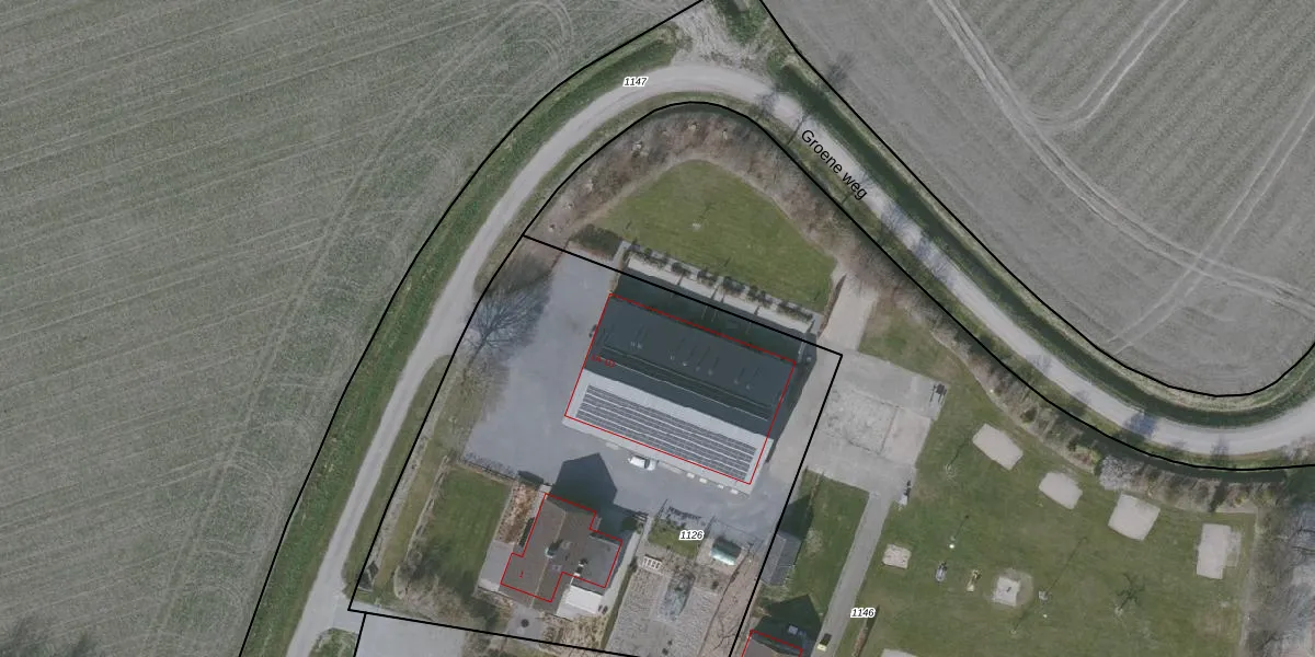 Het perceel waarop Groene weg 1-B staat heeft een oppervlakte van 3150 m². Dit is een zeer groot perceel. De perceeloppervlakte wordt geregistreerd door het Kadaster. Gedetailleerde informatie over de maten van dit perceel kunt u vinden in het rapport Kadastrale kaart met maatvoering van Groene weg 1-B.