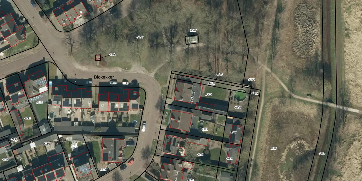 Het perceel waarop Blokekker 18 staat heeft een oppervlakte van 499 m². Dit is een groot perceel. De perceeloppervlakte wordt geregistreerd door het Kadaster. Gedetailleerde informatie over de maten van dit perceel kunt u vinden in het rapport Kadastrale kaart met maatvoering van Blokekker 18.
