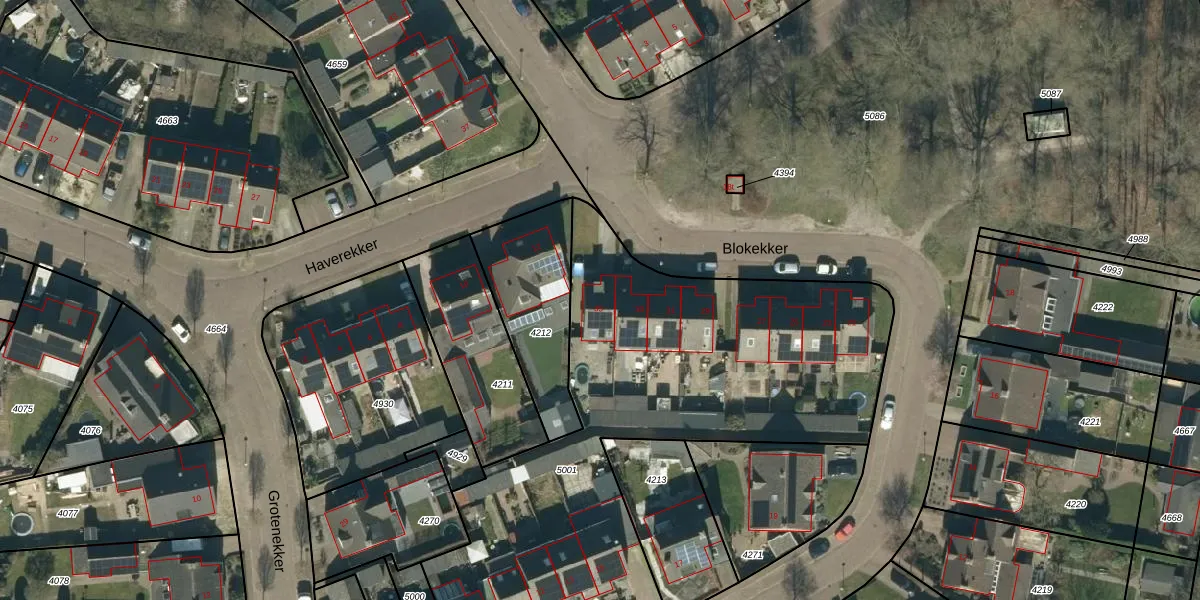 Het perceel waarop Blokekker 35 staat heeft een oppervlakte van 2649 m². Dit is een zeer groot perceel. De perceeloppervlakte wordt geregistreerd door het Kadaster. Gedetailleerde informatie over de maten van dit perceel kunt u vinden in het rapport Kadastrale kaart met maatvoering van Blokekker 35.
