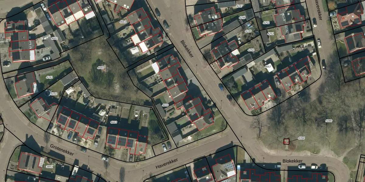 Het perceel waarop Blokekker 43 staat heeft een oppervlakte van 1503 m². Dit is een zeer groot perceel. De perceeloppervlakte wordt geregistreerd door het Kadaster. Gedetailleerde informatie over de maten van dit perceel kunt u vinden in het rapport Kadastrale kaart met maatvoering van Blokekker 43.