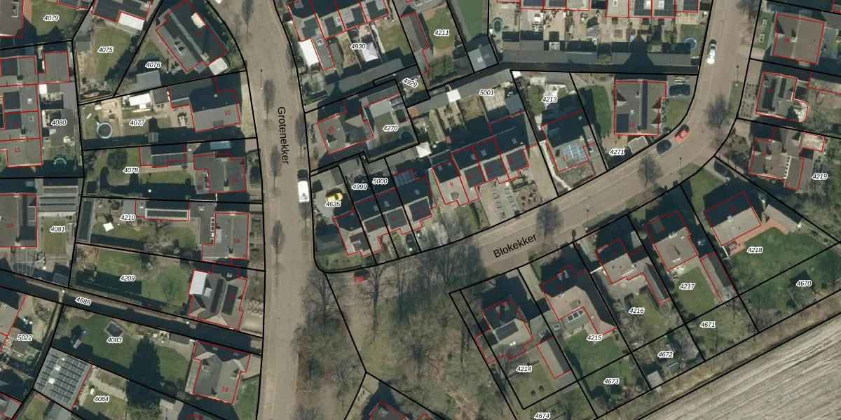 Het perceel waarop Blokekker 7 staat heeft een oppervlakte van 2649 m². Dit is een zeer groot perceel. De perceeloppervlakte wordt geregistreerd door het Kadaster. Gedetailleerde informatie over de maten van dit perceel kunt u vinden in het rapport Kadastrale kaart met maatvoering van Blokekker 7.