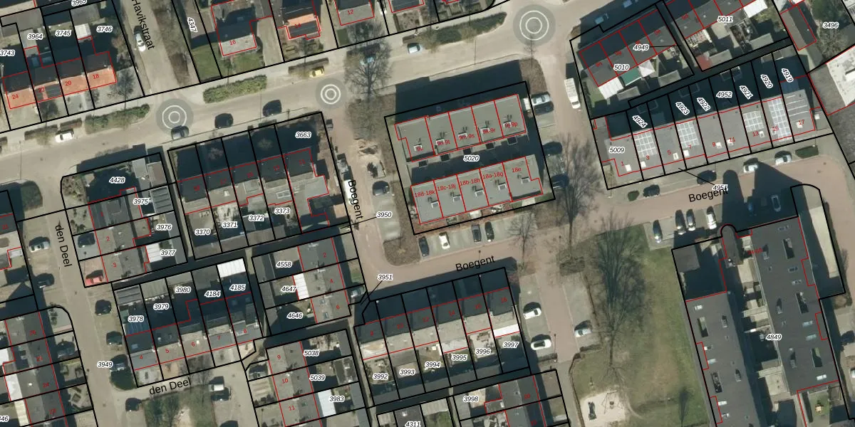 Het perceel waarop Boegent 18-d staat heeft een oppervlakte van 965 m². Dit is een groot perceel. De perceeloppervlakte wordt geregistreerd door het Kadaster. Gedetailleerde informatie over de maten van dit perceel kunt u vinden in het rapport Kadastrale kaart met maatvoering van Boegent 18-d.