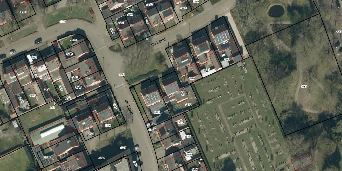 Het perceel waarop de Lend 16 staat heeft een oppervlakte van 379 m². Dit is een groot perceel. De perceeloppervlakte wordt geregistreerd door het Kadaster. Gedetailleerde informatie over de maten van dit perceel kunt u vinden in het rapport Kadastrale kaart met maatvoering van de Lend 16.