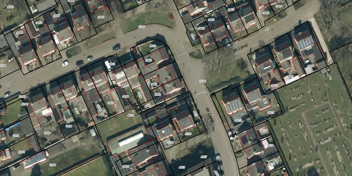 Het perceel waarop de Lend 23 staat heeft een oppervlakte van 188 m². Dit is een middelgroot perceel. De perceeloppervlakte wordt geregistreerd door het Kadaster. Gedetailleerde informatie over de maten van dit perceel kunt u vinden in het rapport Kadastrale kaart met maatvoering van de Lend 23.