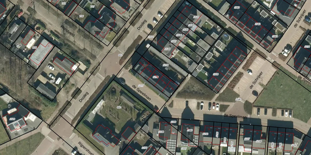 Het perceel waarop de Speelman 36-a staat heeft een oppervlakte van 308 m². Dit is een groot perceel. De perceeloppervlakte wordt geregistreerd door het Kadaster. Gedetailleerde informatie over de maten van dit perceel kunt u vinden in het rapport Kadastrale kaart met maatvoering van de Speelman 36-a.