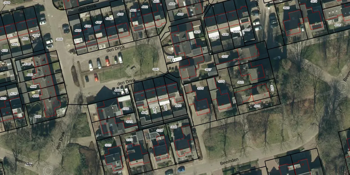 Het perceel waarop den Drink 40 staat heeft een oppervlakte van 165 m². Dit is een middelgroot perceel. De perceeloppervlakte wordt geregistreerd door het Kadaster. Gedetailleerde informatie over de maten van dit perceel kunt u vinden in het rapport Kadastrale kaart met maatvoering van den Drink 40.