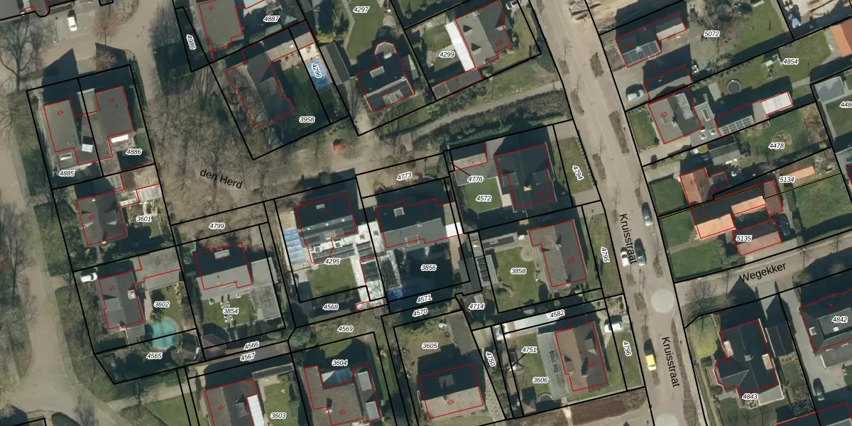 Het perceel waarop den Herd 6 staat heeft een oppervlakte van 501 m². Dit is een groot perceel. De perceeloppervlakte wordt geregistreerd door het Kadaster. Gedetailleerde informatie over de maten van dit perceel kunt u vinden in het rapport Kadastrale kaart met maatvoering van den Herd 6.