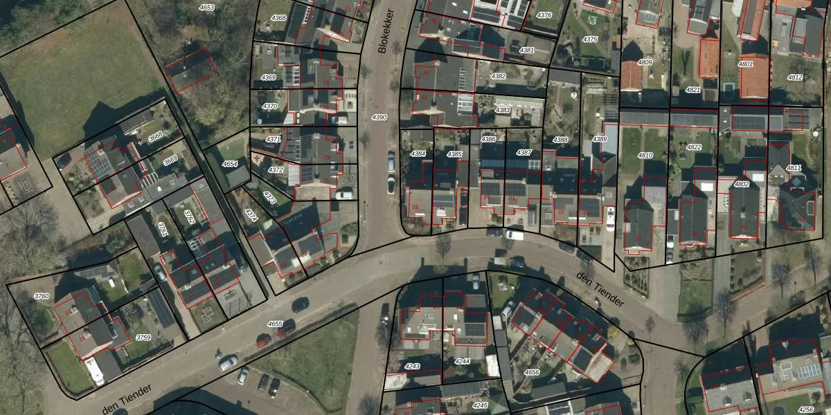 Gebruik de zoekbalk of klik op een perceel voor informatie over de adressen binnen dit perceel.
