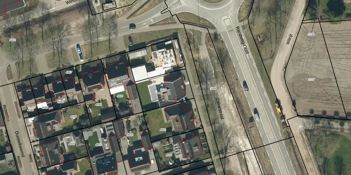 Het perceel waarop Denestraat 33 staat heeft een oppervlakte van 532 m². Dit is een groot perceel. De perceeloppervlakte wordt geregistreerd door het Kadaster. Gedetailleerde informatie over de maten van dit perceel kunt u vinden in het rapport Kadastrale kaart met maatvoering van Denestraat 33.