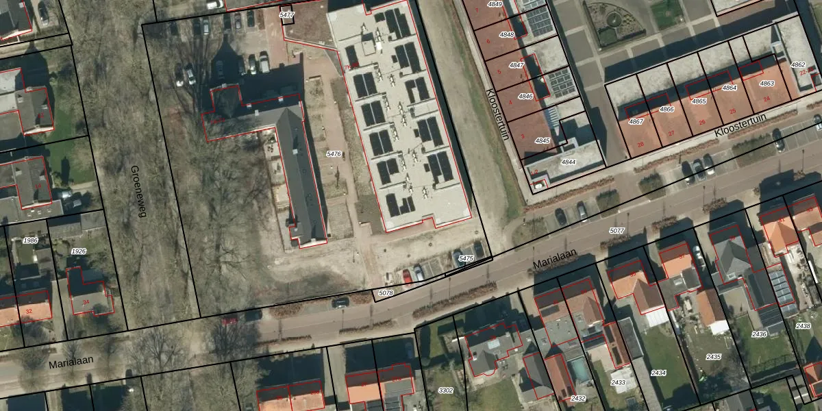 Het perceel waarop Groeneweg 9-J staat heeft een oppervlakte van 4957 m². Dit is een zeer groot perceel. De perceeloppervlakte wordt geregistreerd door het Kadaster. Gedetailleerde informatie over de maten van dit perceel kunt u vinden in het rapport Kadastrale kaart met maatvoering van Groeneweg 9-J.