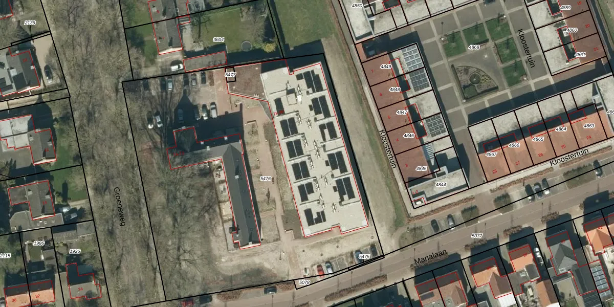 Het perceel waarop Groeneweg 9-N staat heeft een oppervlakte van 4957 m². Dit is een zeer groot perceel. De perceeloppervlakte wordt geregistreerd door het Kadaster. Gedetailleerde informatie over de maten van dit perceel kunt u vinden in het rapport Kadastrale kaart met maatvoering van Groeneweg 9-N.
