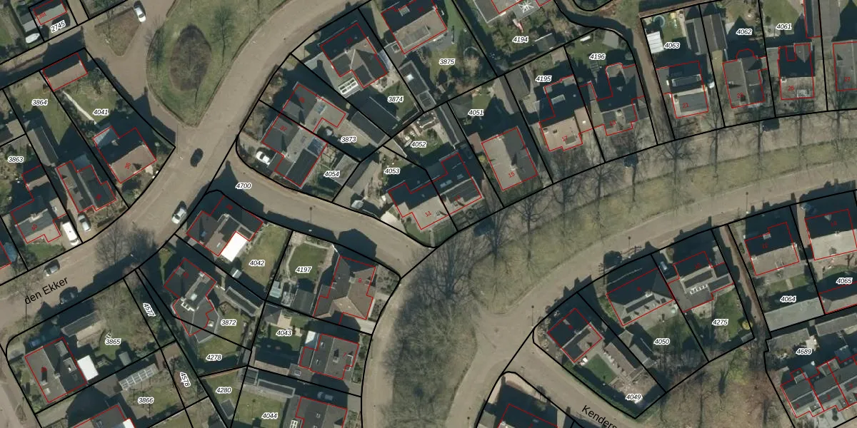 Gebruik de zoekbalk of klik op een perceel voor informatie over de adressen binnen dit perceel.
