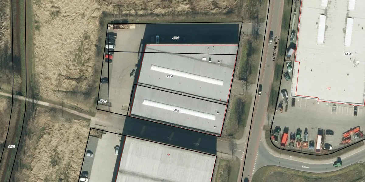 Hamelendijk 4 is gelegen op kadastraal perceel RSL00C4984. Deze kadastrale aanduiding is uniek en wordt gebruikt door het Kadaster om eigendomsrechten en andere zakelijke rechten vast te leggen. Het perceel maakt onderdeel uit van de kadastrale gemeente Reusel.