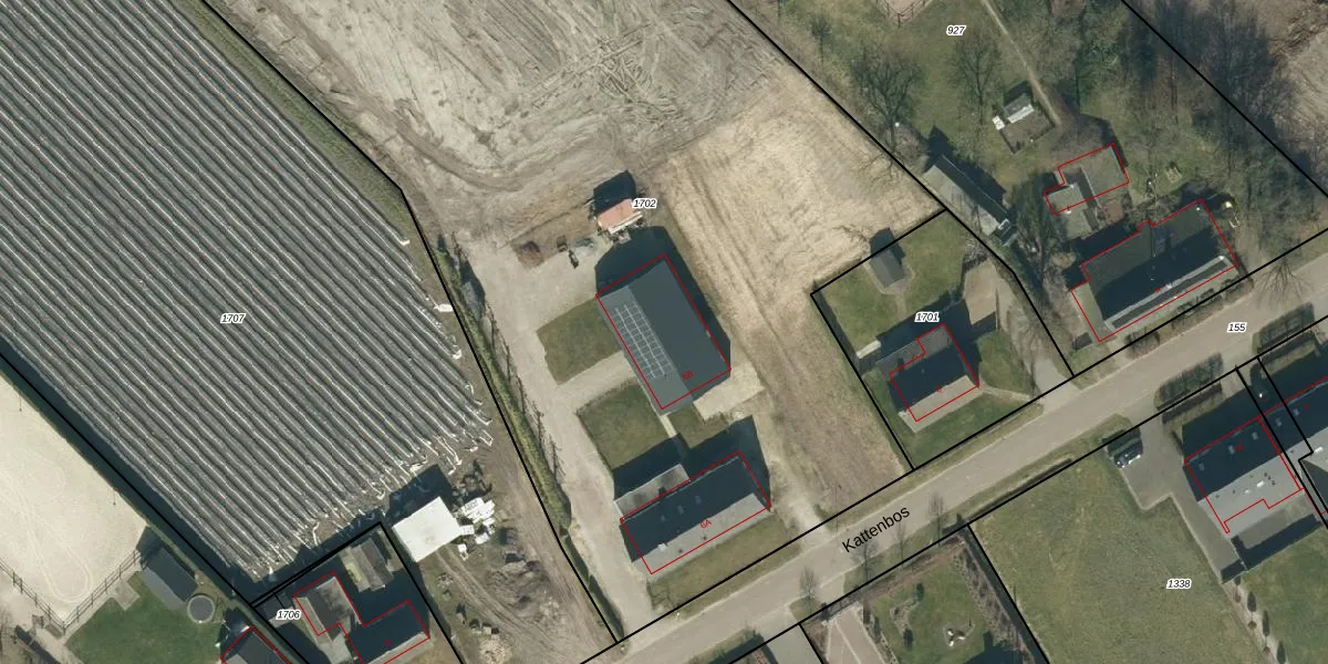 Het perceel waarop Kattenbos 6-B staat heeft een oppervlakte van 1,9 ha. Dit is een zeer groot perceel. De perceeloppervlakte wordt geregistreerd door het Kadaster. Gedetailleerde informatie over de maten van dit perceel kunt u vinden in het rapport Kadastrale kaart met maatvoering van Kattenbos 6-B.