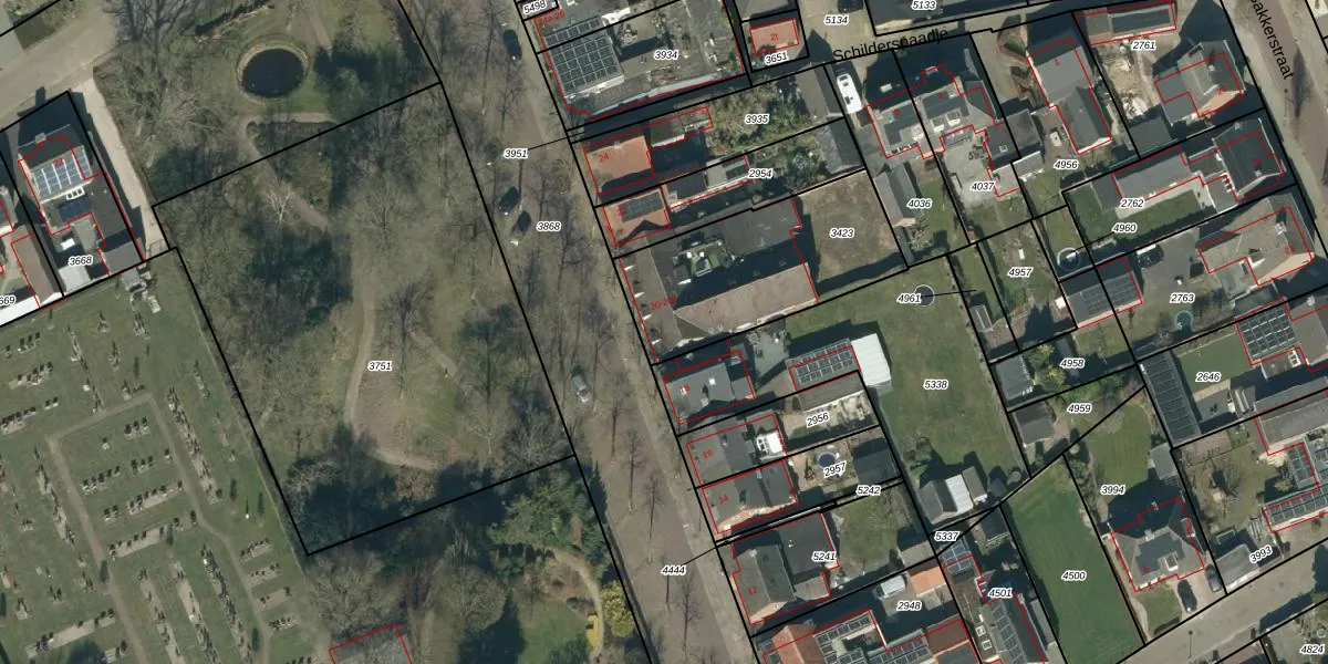 Het perceel waarop Kerkstraat 20 staat heeft een oppervlakte van 679 m². Dit is een groot perceel. De perceeloppervlakte wordt geregistreerd door het Kadaster. Gedetailleerde informatie over de maten van dit perceel kunt u vinden in het rapport Kadastrale kaart met maatvoering van Kerkstraat 20.